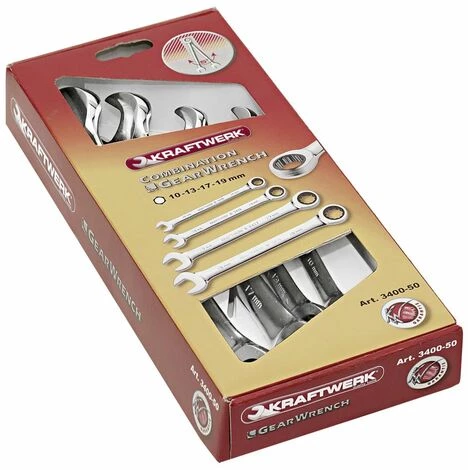 Kraftwerk Clé à cliquet Ensemble de 4 pièces 10-13-17-19 Jeu de clés à cliquet 4 pièces seulement 10-13-17-19